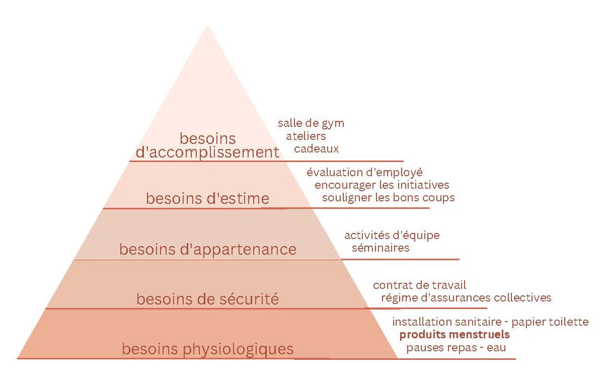 Les produits d'hygiène féminine sont considérés par la majorité de la population comme un besoin de base, malgré qu'ils ne soient pas souvent traités ainsi. Il s’agit d’une nécessité pour la santé des femmes faisant ainsi partie des besoins physiologiques.